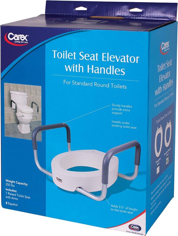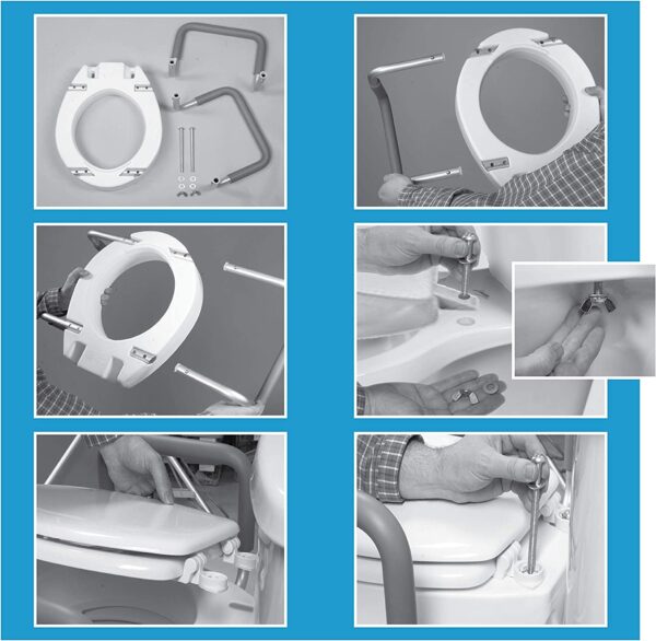 - Place one handle at a time into the tubes on the raised toilet seat.