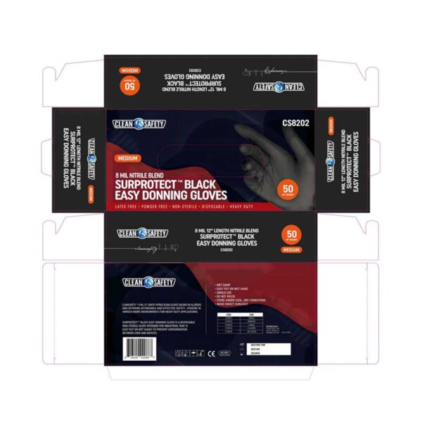| Package | 50 gloves per box, 10 boxes/case |