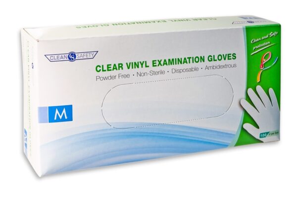 Clean Safety Clear Vinyl Exam Gloves, 100Pcs Per Box