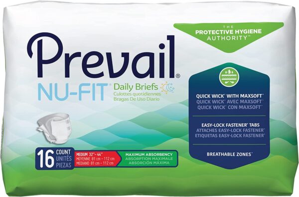 Designed for extra leakage protection, Prevail per-fit features Comfort-Shape Plus with gentle elastics that shape to your body for a more comfortable and discreet fit than standard adult diapers at a great everyday value. Breathable zones allow skin to breathe quick Wick with Max soft and a fast absorbing thin core rapidly lock away moisture and odor odor Guard Easy-Lock fasteners grip and hold without being sticky cloth-like outer fabric and Dr if it