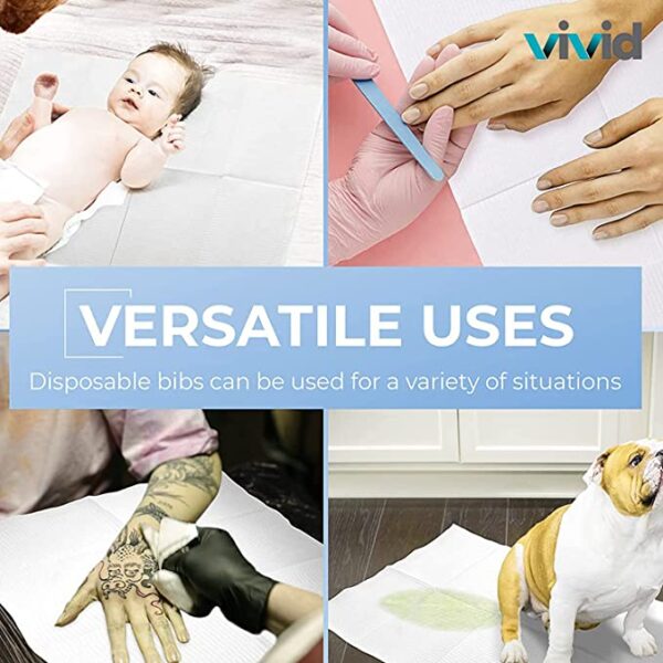 Vivid OnceBib Disposable, Patient Bib, 2 Ply paper and 1 Poly Backing,13″x18″, Set of 500 (White)