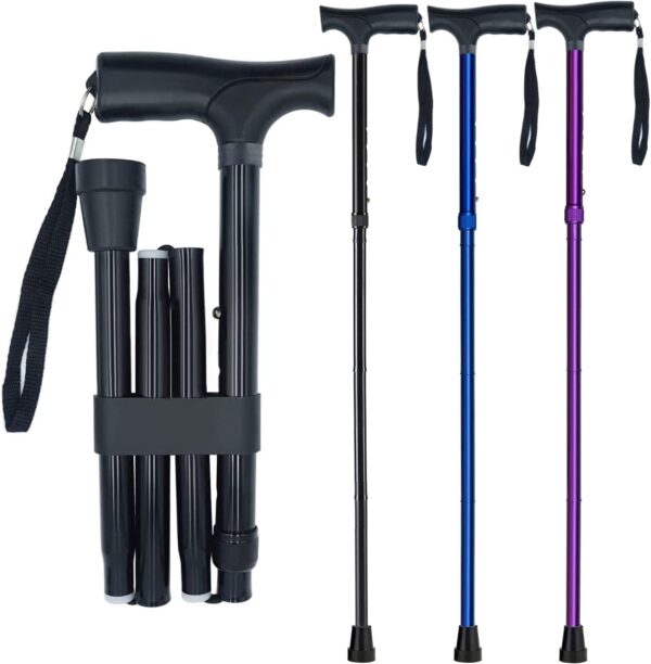 COLLAPSIBLE AND SAFETY: Anodized aluminum body and securely locks provide maximum stability and safety while walking on any surface.Safely supporting up to 250 pounds.This folding cane can be collapsed in 4 interconnected sections,perfect size and easily put it into your tote bag, backpack, large purse, glove compartment.